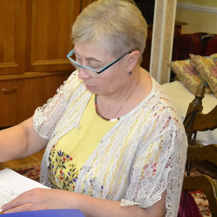 Елена Вячеславовна — педагог-психолог. Двадцать лет она дарила заботу и внимание не только собственным детям: работала социальным педагогом, инспектором по охране детства и детским психологом. Потом решила открыть магазин-студию «Русские узоры», но и тут в споре между бизнесом и любовью к детям победила любовь. Магазин превратился в место для мастер-классов по рисованию, кройке и шитью, игрушке и истории родного края.