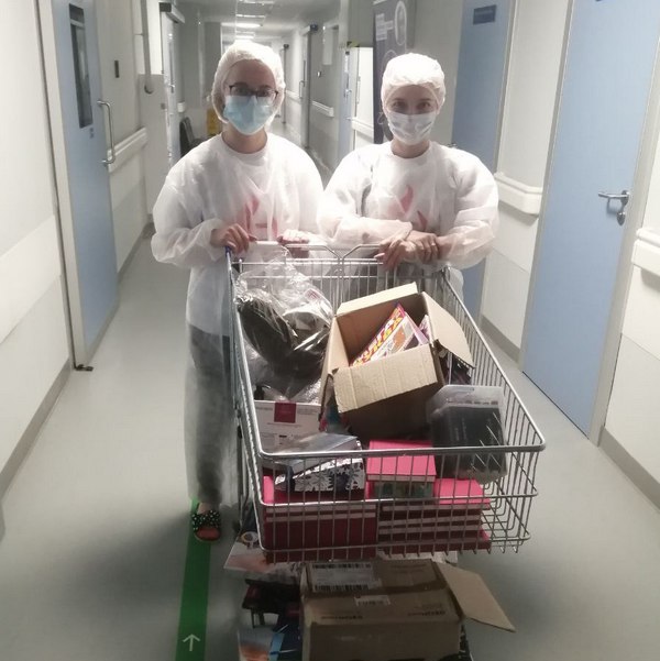 Волонтеры и сотрудники фонда посещают пациентов гематологических отделений и дарят подарки — это акция «Тележка радости».